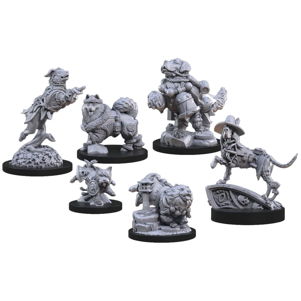 Inside this box you’ll find six fully assembled, highly detailed miniatures ready to paint or play. These dogs are compatible with all fantasy roleplaying games and can be used as player characters, companions, or familiars. The choice is yours!