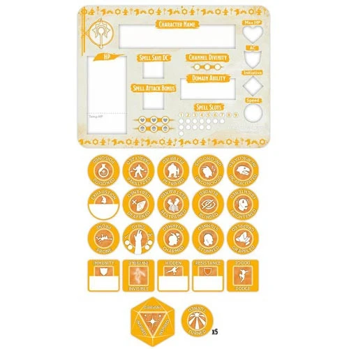 This token set is designed to allow you to easily and quickly track your character’s status effects. If your character is frightened, paralyzed or unconscious, your allies will be able to see at a glance that you are in need of help. Because all of our full-color tokens are made of durable Perspex they are wet-erasable, so you can write additional information straight onto them.
